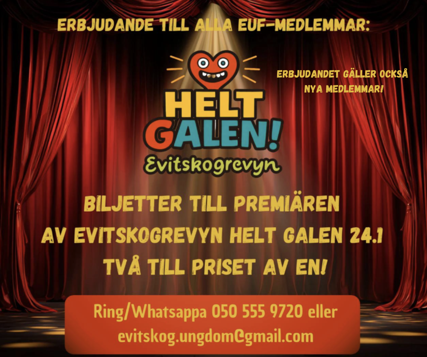 Hösten är i antågande och en mängd föreningsaktiviteter kör igång. Så också i Evitskog. Evitskog Ungdomsförening (EUF) sätter igen upp en ny revy som kommer att ha premiär i januari 2026 och du är hjärtligt välkommen med.