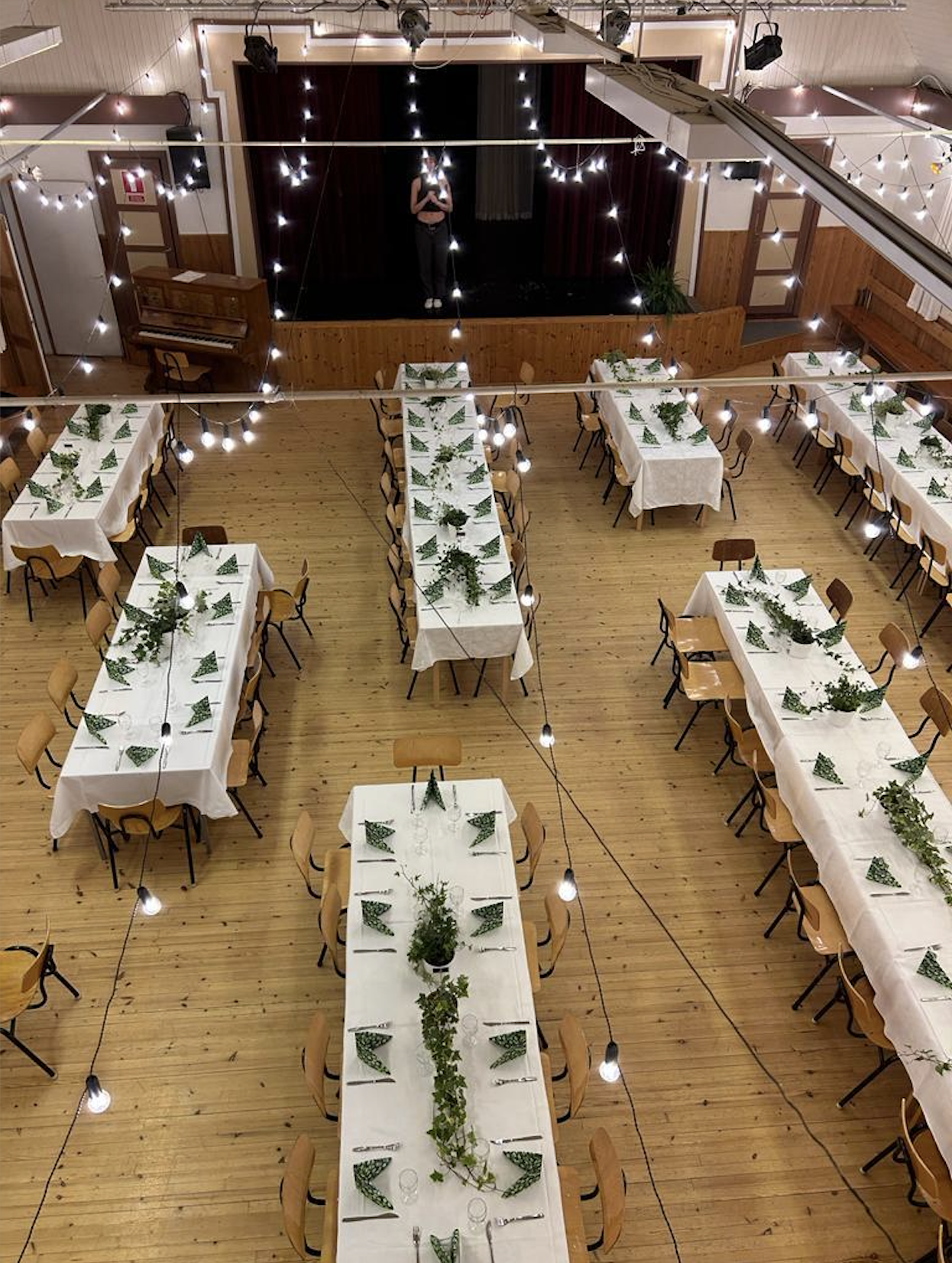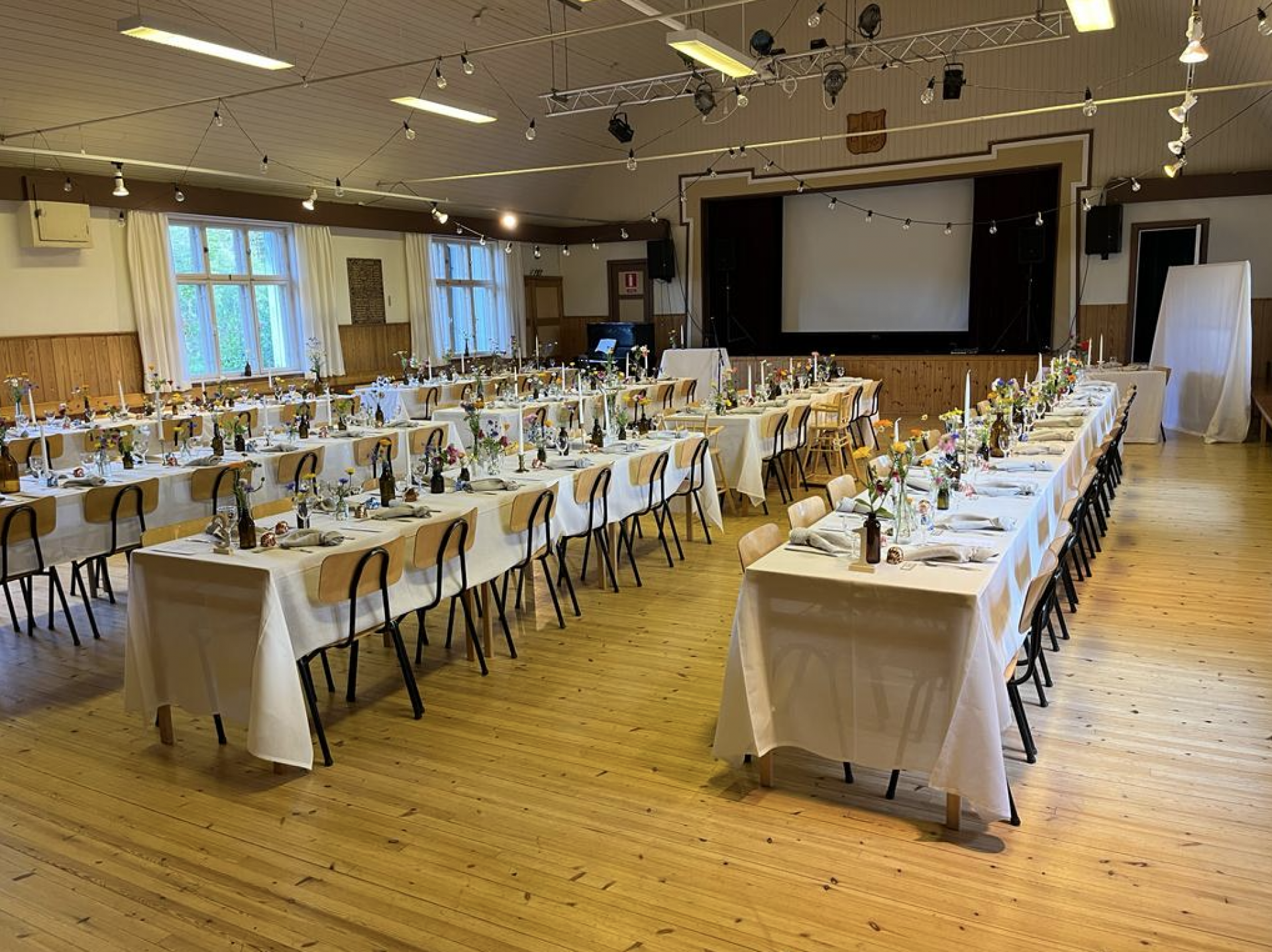 Det är också möjligt att låna mikrofon med högtalare. Huset erbjuder också projektorduk.